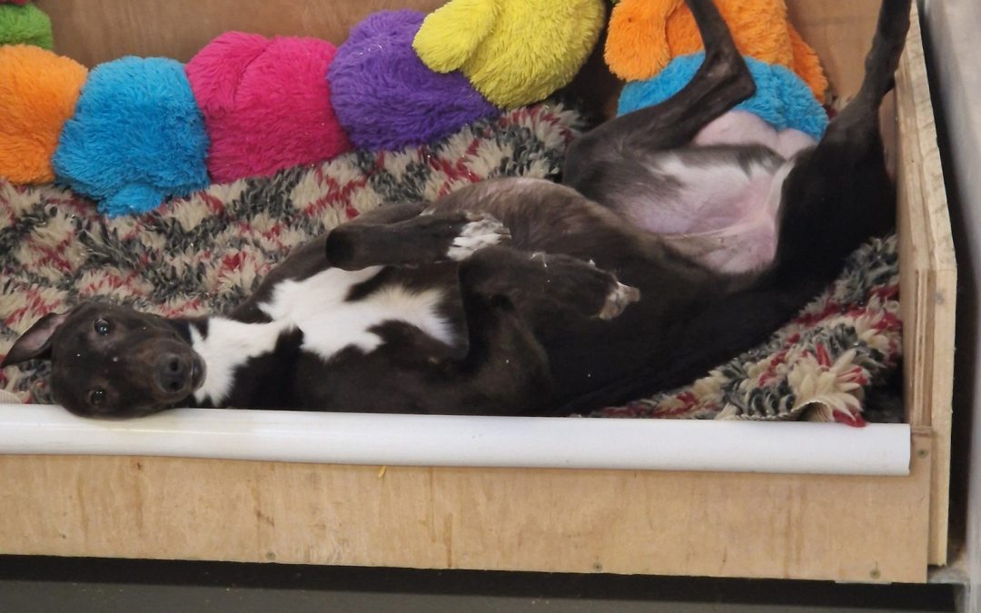 Amelia is a lovely girl, she loves her kennel and her caterpillar, bet she would love a sofa even more. She is no trouble.