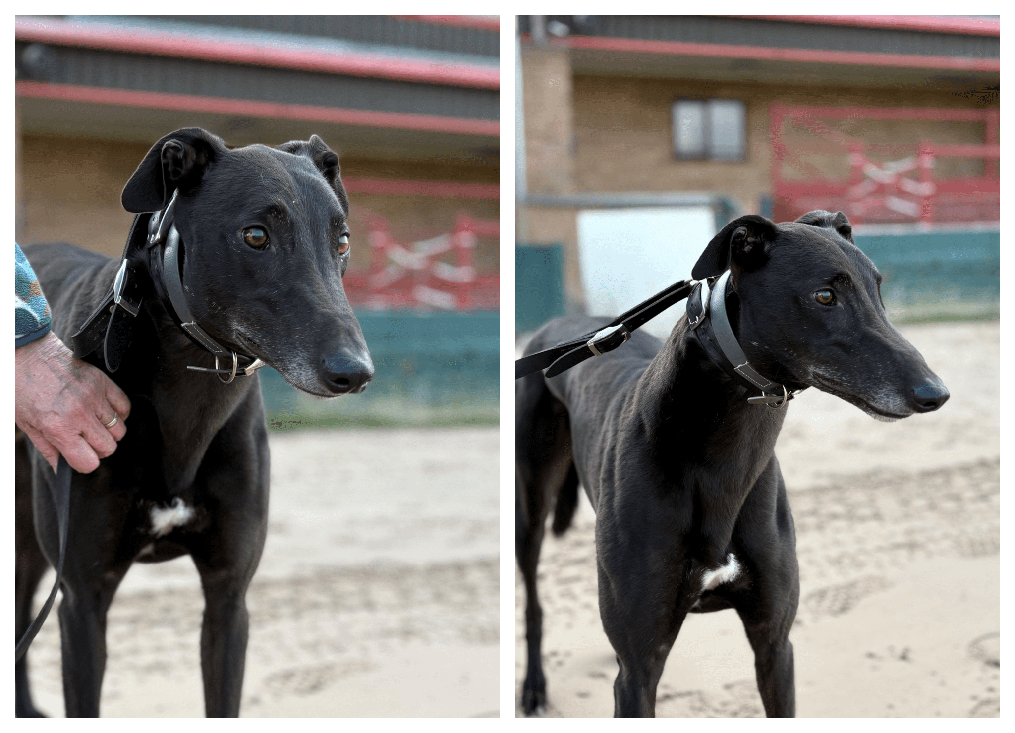 “Blackout is very friendly boy with people and other dogs and loves attention. This paragon of virtue was very interested in being friends with Dreamer. Walked nicely & calmly on his lead. Also he was completely unfazed by the forklift in the car park. Blackout thoroughly enjoyed his walk and was wagging his tail constantly . Just laid down in the van quietly whilst waiting for his turn. A happy sunny straightforward boy who needs a chance.“