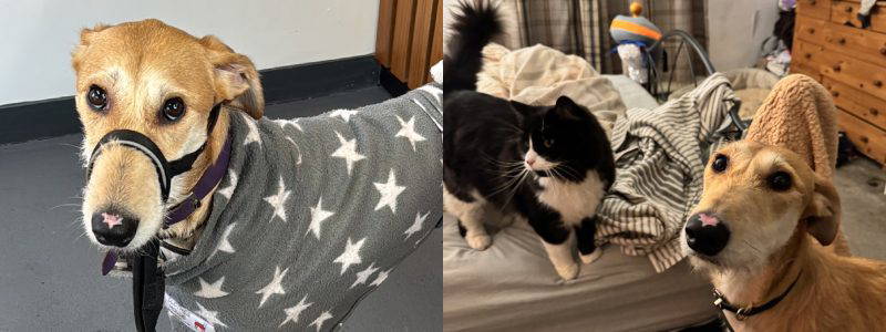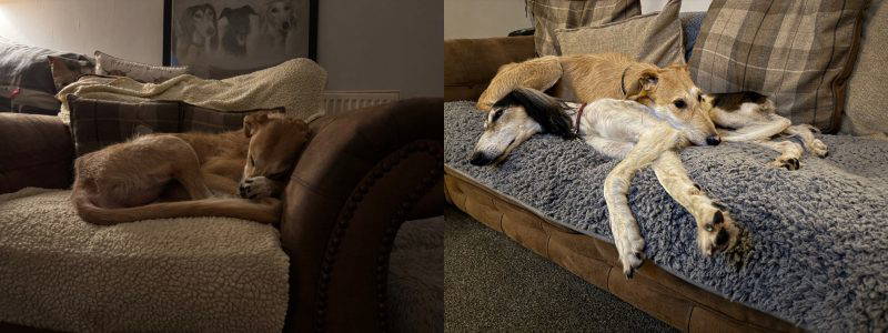All in all Cedric is a very lovely boy who loves people, cuddles and TLC. He needs a home where people are around most of the time, ideally with a calm female dog/sighthound as a friend. He would be better in a rural area where he won’t see many dogs on walks whilst he continues his training. He is smart and willing to learn so with time and patience we feel his reactivity will settle down, especially as we have already seen such progress in a short couple of months.