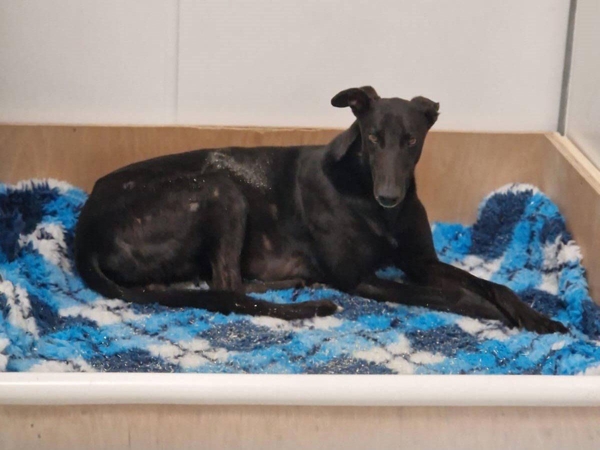 Lad who has been rotting in his Kennel since his last race in June 2022, until he came up here in August. Another of the Macmanus dogs.
