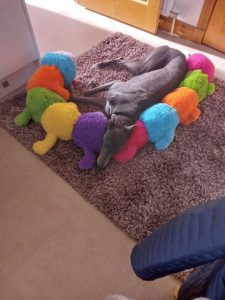 I got a call last weekend from a lovely lady, in Aberdeen, very worried as her friend is in hospital and she needed somewhere for her friends greyhound girl to go and be safe…a very spoilt and treasured girl at that. Long story short…she spent 2 nights with her dream older man,Tarzan..