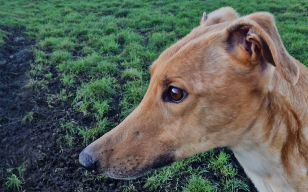 This is a little cracker of a dog. A Macmanus welfare case. His career in Britain lasted 14 days start to finish, almost eclipsing his Irish form (beaten 23 lengths on his only start). Excellent effort Kit. As you can see, he is a bit motheaten but has vastly improved from the beaten down wreck that was coaxed from the van a few months ago. Kit has begun to enjoy life again,