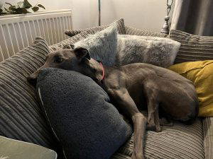 The little blue girl, Scarlets Choice found herself being picked up as a stray and ending up in the stray kennel at Penistone just over a couple of weeks ago. She was very popular on Facebook, 567 shares and not 1 offer of help except from me. Fortunately for her I had some good friends who were on the lookout for a new girl. Their last beautiful greyhound girl lived until she was 15 years and 1 month…