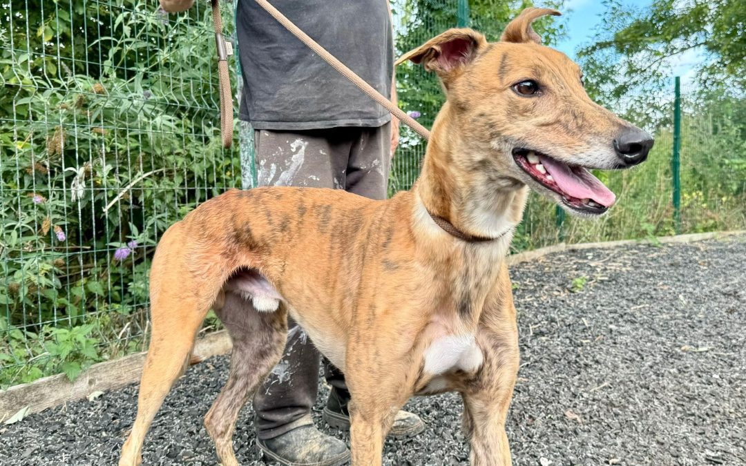 Beautiful, beautiful, dog. Pal won 9 out of his 90 races but signalled that he didn’t want to do it anymore. Pal last raced two months ago, finishing last in a rough competition. It really was the final straw for him. He is about 30 kgs so not too big.