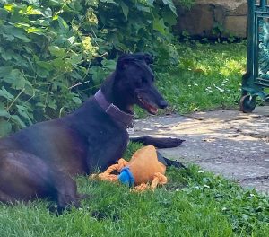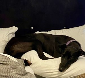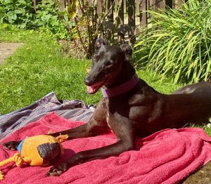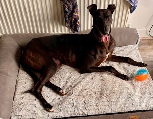 She is a clean, sociable and happy girl. Mixes well with sight hounds and other breeds. She travels well, very calm on the lead. Whilst in her foster home she has been a joy to have around, she has an appetite as big as her heart and has easily settled into home life.