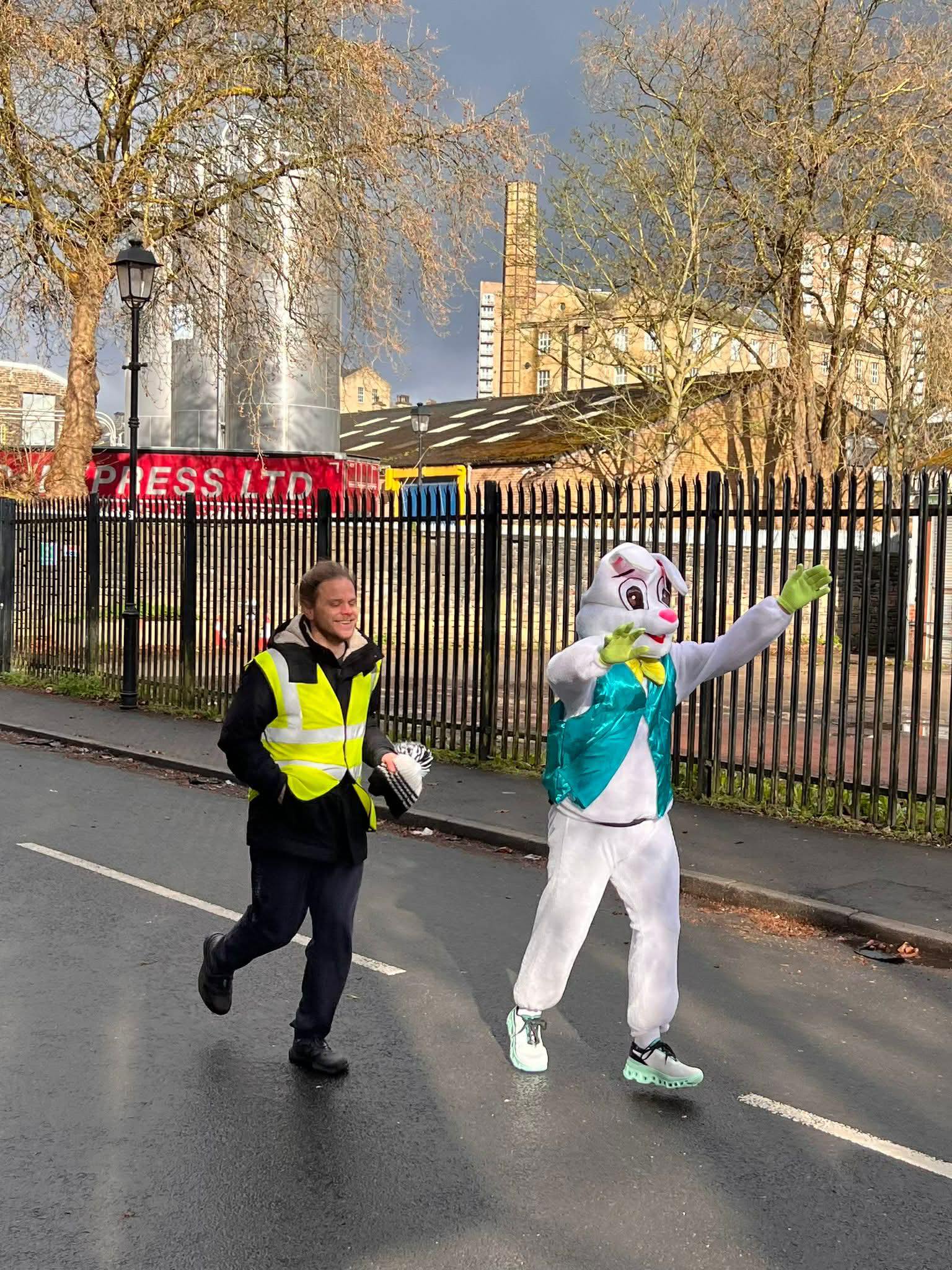 The bank holiday weekend was full of running though, 20 miles on Monday through an incredibly busy Hebden Bridge, a 19 minute Halifax parkrun which is a tough course and marshalling the new Halifax 10k hence the photo with our easter bunny (MBE) tail runner. With all that, some of the mojo has already returned.