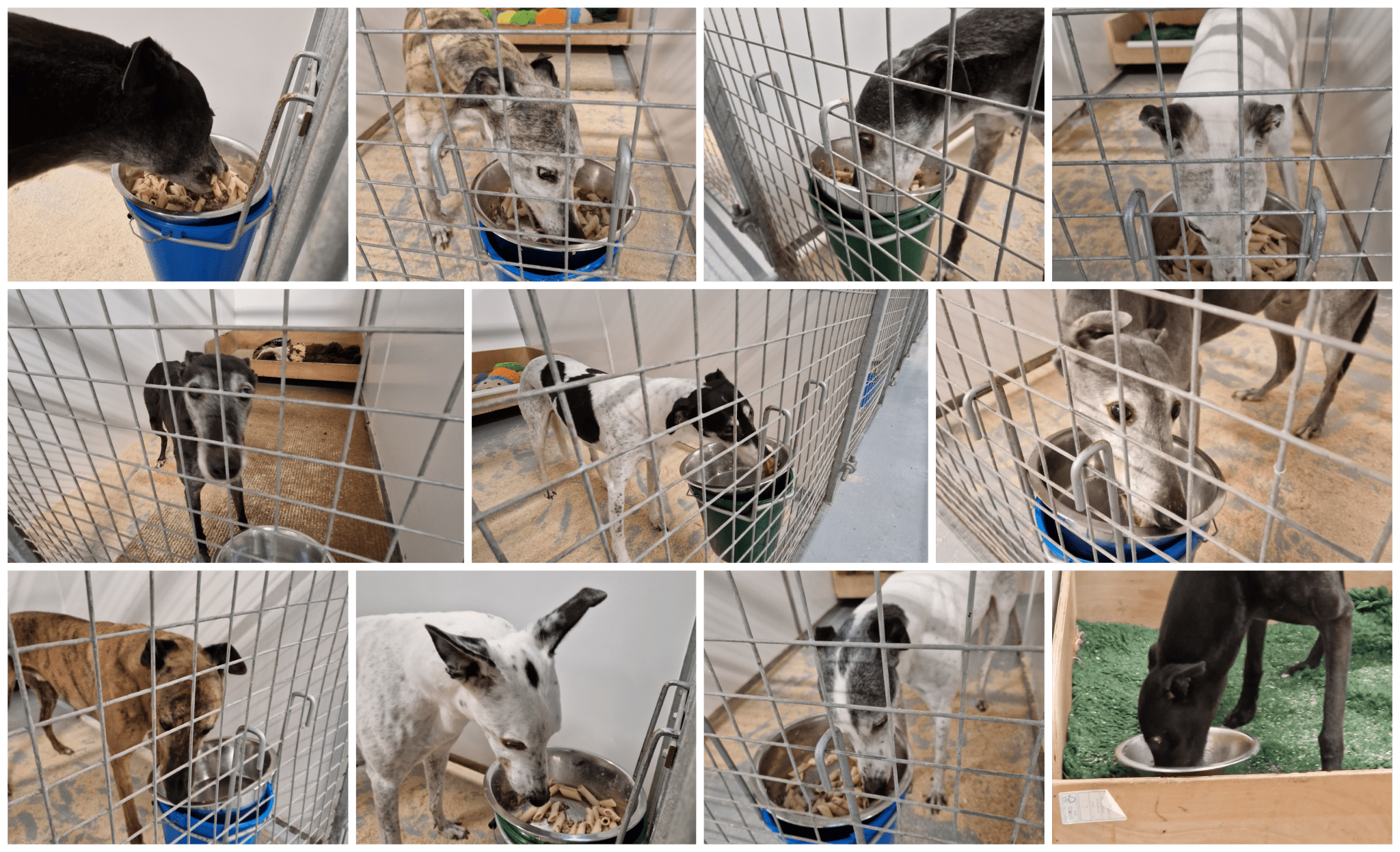 The sponsor dogs, tucking into their afternoon pasta and mince the other day… bon appetito