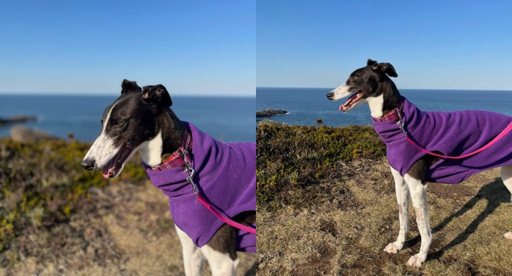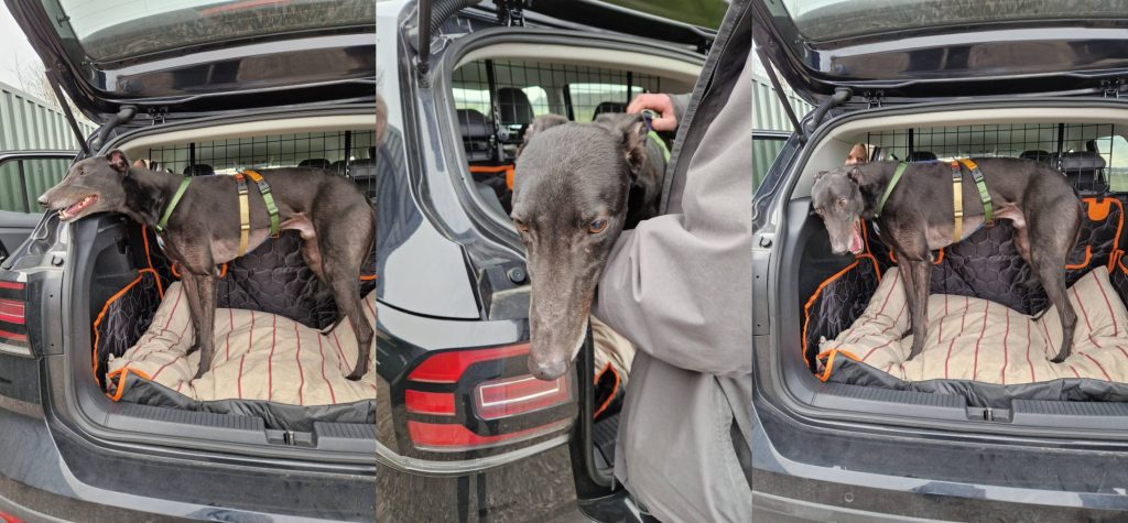 Gone in 60 seconds… well, 10 days. Domino was a stray from East Yorkshire, sprung from the pound in Hull. He has now gone to his new home with his foster mom and dad on the Isle of Skye.