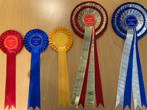 In August we have our two dog shows in Halifax (24th August) and Nairn (31st August). The rosettes arrived the other day…