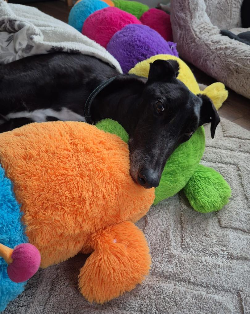 Jet is very recently retired due to a muscle injury and needs someone to show him there is life away from the track. He’s quite keen at the minute but once Jet understands that trips to the park and for strolls & sniffs, he’ll be just fine.