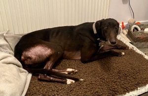 Jack. One Eyed Jack. It made our Xmas. Homed in Scotland with a wonderful family and other dogs for company. Jack was hot footed up the M1 and didn’t get time to unpack. Last seen with a set of antlers on his head. Not a dry eye in the kennel.