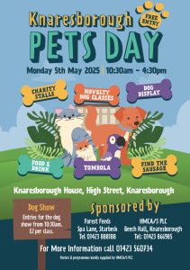 On Bank Holiday Monday 5th May, we will be having a stall at Knaresborough Pets Day Dog Show. It’s a lovely day out with many animal charity stalls, refreshments and displays, as well as the fun dog show. Do come along and support us. It will be in the grounds of Knaresborough House, right in the town centre.